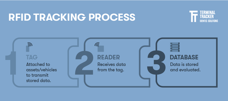 The concept is quite simple. If an object is to be tracked, it is identified with a transponder (or, for simplicity, a tag). At predefined intervals, the tag sends its ID and the data it has recorded to a reader. This, in turn, passes the data on to a middleware, where it is filtered and processed.